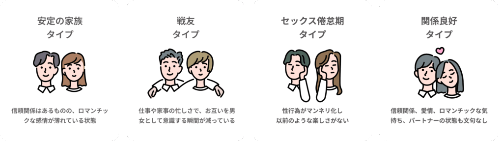 このページでは、1万件以上の相談データをもとに作られたセックスレスタイプ診断をご紹介します。