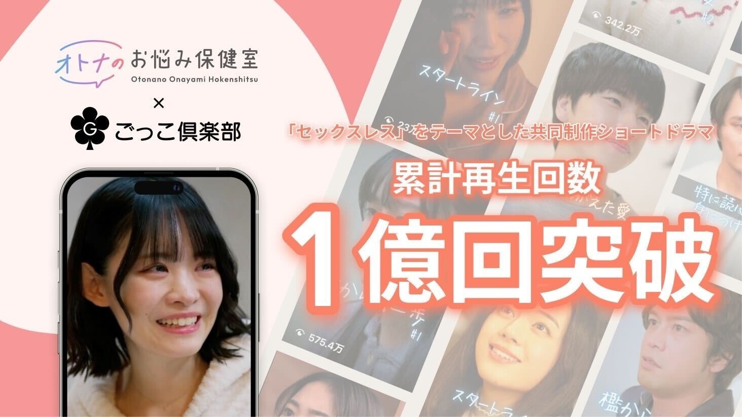 株式会社ハトリリが運営する女性向け性の悩み相談サービス「オトナのお悩み保健室」と、日本一のショートドラマクリエイター(※)『ごっこ倶楽部』を運営する株式会社GOKKOによる共同制作のショートドラマシリーズが、累計再生回数1億回を突破いたしました。